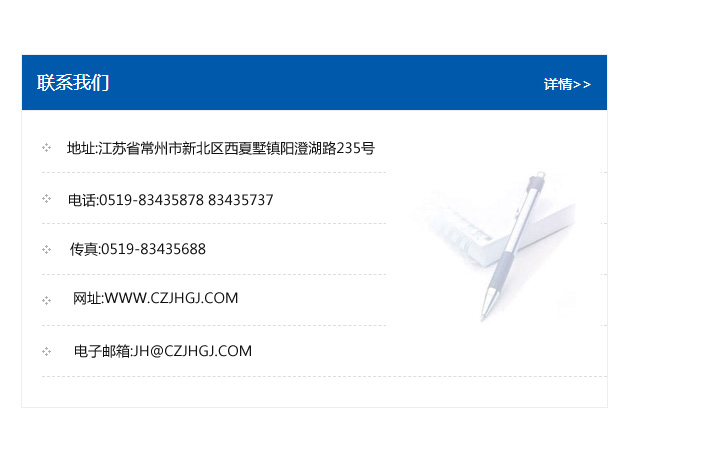 地址:常州市新北區(qū)友邦商務(wù)大廈1幢16、17層  電話:0519-85101652  傳真:0519-85112595  郵編:213022  網(wǎng)址:www.cz-jiayue_cn.szghzx.com  郵箱:xiajifengaa@163.com